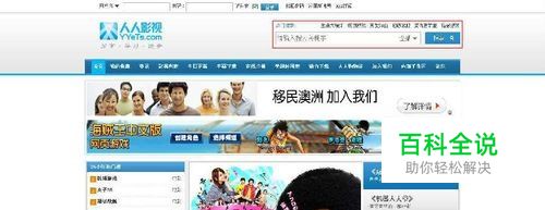 在地址栏中输入人人影视的官方网址(www.yyets.com),进入其网页,找到位于右上方的搜索栏(此图所示为截图时网页布局)