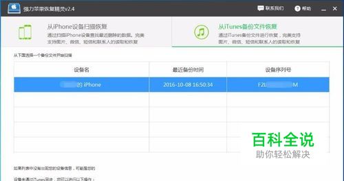 安装运行,可以看见软件有两个功能,点击选择“从iTunes备份文件恢复”功能,然后软件将会检测到苹果手机备份数据,请点击“开始扫描”按钮扫描该数据文件。