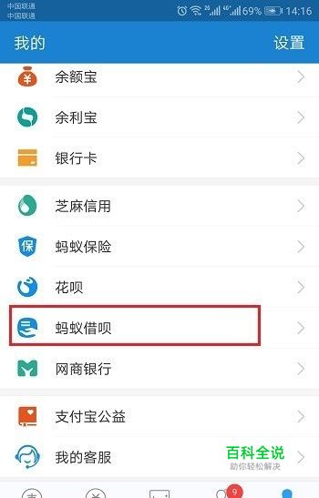 第二步进去我的界面之后,点击蚂蚁借呗,如下图所示: