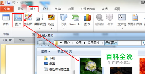 首先打开PPT,切换到“插入”选项卡,接着点击“图片”在插入图片窗口选择一张要插入的照片,点击确定插入图片