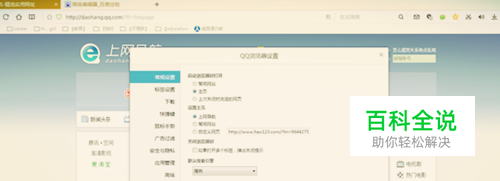 点击“QQ浏览器设置”按钮,弹出设置窗口
