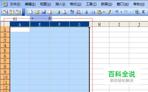 进行打开一个excel的表格,进行选中需要的隐藏列数据,例如选中A到F的选项。