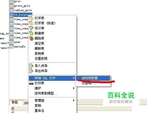 首先进去数据库,找到你要存储的表格,如下图。 右键点击表名,选择转储sql文件;