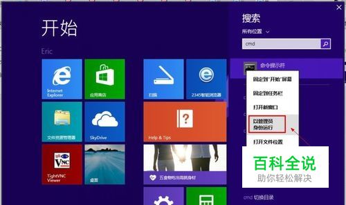 再输入【cmd】在搜索出来程序上点击右键选择【以管理员身份运行】。