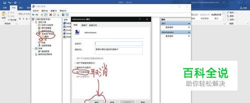 点击“本地用户和组”,再点击“用户”,双击“Adminstrator”,取消勾选“帐户已禁用”,点“确定”。
