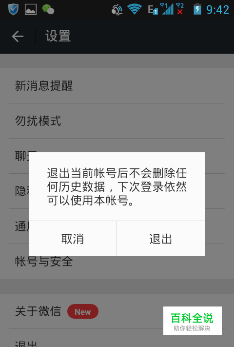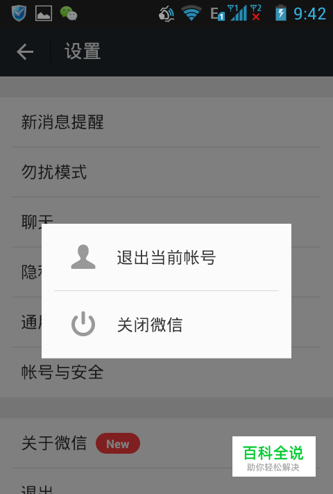 手指轻触退出之后,微信会弹出一个窗口,有两个选项,分别是退出当前帐号和关闭微信