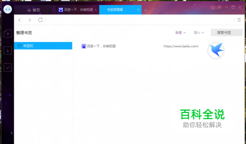 6、在“书签管理器”中,我们也可以看到收藏到书签栏的网页地址。如图所示;