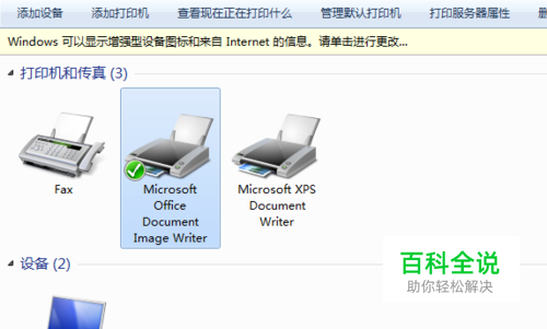 开始菜单打开,并选择控制面板下面的打印机程序命令。
