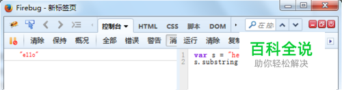 2、string.substring(from, to):从from位置截取到to-1的位置 var s = "hello"; s.substring(1,3);//相当于从位置为1的字符截取到位置为2的字符,得到子串为:"el"