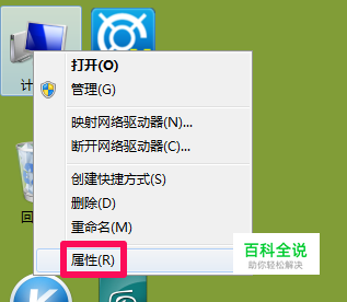 在桌面右键单击计算机,然后选择属性。
