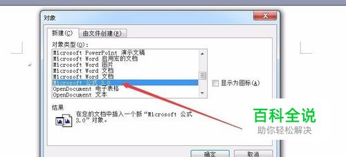 2、在弹出的对话框中选择新建找到Microsoft公式3.0单击,