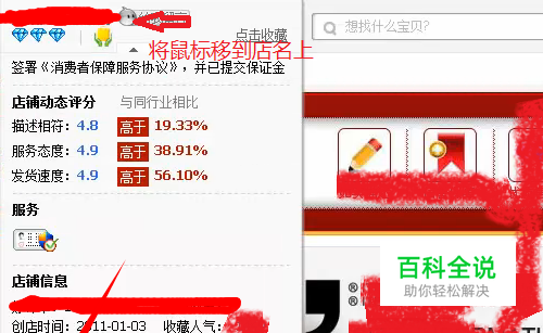 进入自己的店铺,把鼠标移动到店名上,就会看到一个下拉小页面。在”收藏“按钮上右键,然后选择属性。