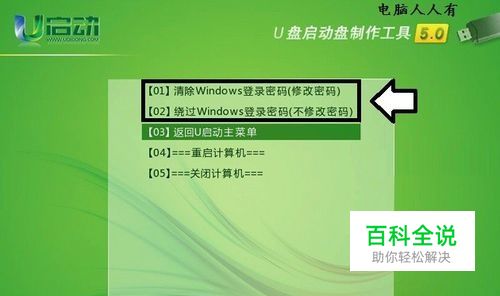 比如选择第一项:清除Windows登录密码(修改密码)→按回车键确认。