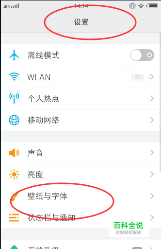 设置---壁纸与字体 点击【设置】,然后在弹出的页面中找到【壁纸与字体】并点击它,如下图所示: