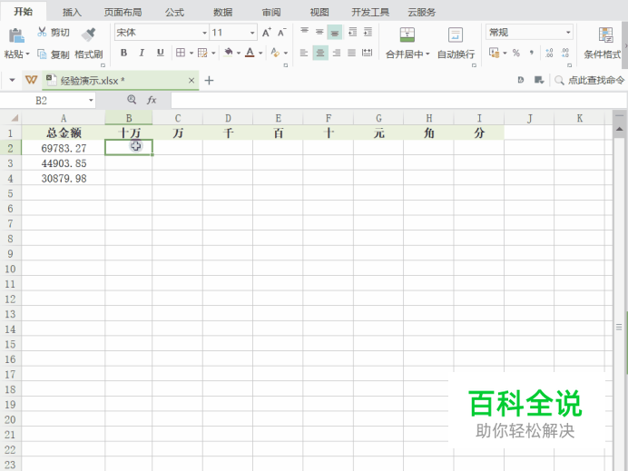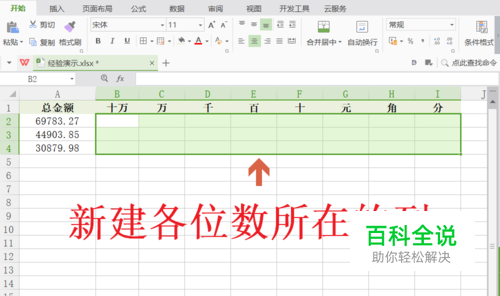 新建各个位数所在列。 按照金额规模新建各个位数所在列,比如金额以“亿”为单位,则最高建立到“十亿”。