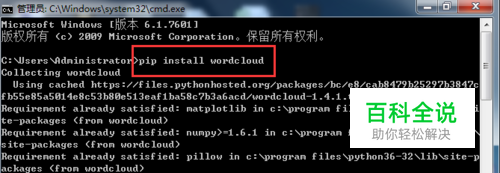 pip install wordcloud 按回车执行 是不是成功了呢?