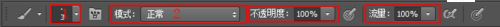 画笔工具: 3.不透明度:可以设置画笔的不透明度 4.流量:决定画笔在绘画时的压力大小