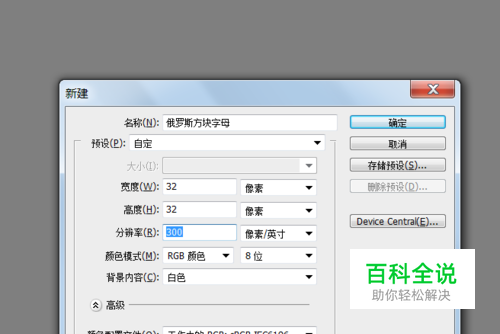 Ctrl+N新建文件,设置文档的宽度高度,本文设置为32x32像素。你也可以自己定义长宽,比如说,设置成100*100,就10000个点,这是不是让你望洋兴叹了?所以,请不要设置的太大,不好控制。
