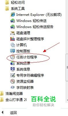 1、【所有程序】--【附件】,在附件中的【系统工具】中找到【任务计划程序】并打开;