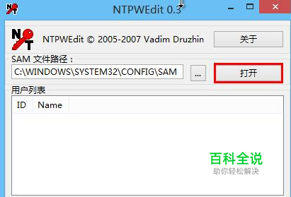 2.密码编辑器会自动提取sam文件,若没有,可点击省略号按钮进入“C:\WINDOWS\SYSTEM32\CONFIG”目录下添加。接着点击“打开”按钮