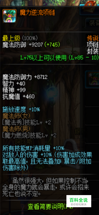 图中的项链可以说是很特殊了,居然加魔力燃烧的等级,这真是太惊喜了!