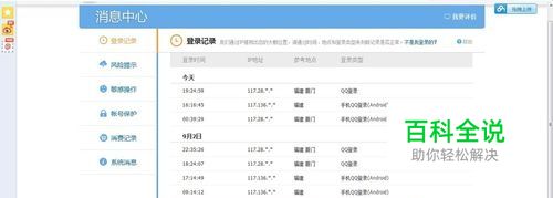 点击“帐号相关信息- 登录记录”进入还可以了解更为详细的内容,如 登录时间、IP地址、参考地点、登录类型等情况。。