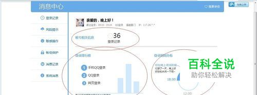 进入查看更多后,在 消息中心-qq安全中心,你可以查看如下内容详情,如: 帐号相关信息 **登录记录,登录排行榜,登录时间分布等记录情况。