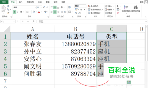 完成区分手机号、座机号的操作。 现在即可看到在Excel工作表中的C列存放的就是区分出来的手机号、座机号。