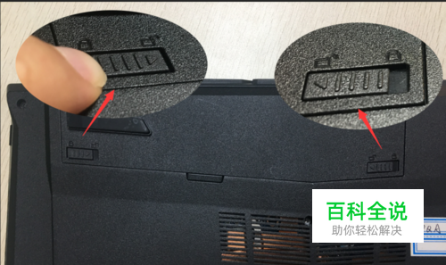 一、第一步,我们必须先取掉电池。电池两边各有一个卡扣,图片中的右边是死扣我们需要推至开锁图标处,打开卡扣;图片中的左边是活扣,我们需要用手推至开锁图标处按着不要松手;这个时候另外一只手再把电池扣起来就好了。