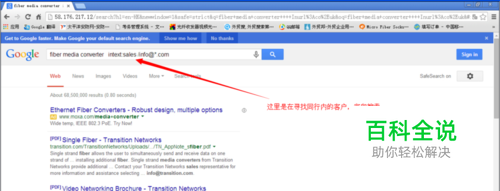 当然,这里我要分享的是如何利用Google,开发出同行业内的客户。比如说,我是做 光纤收发器的,英文:fiber media converter .可以用 Inurl:指在地址栏中搜索 。