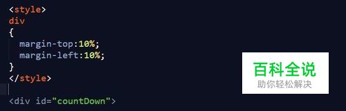 打开网页编辑器,先写DIV+CSS代码,这个用于前端显示的,代码如下所示: <style> div { margin-top:10%; margin-left:10%; } </style> <div id="countDown"> <b>——</b> </div>