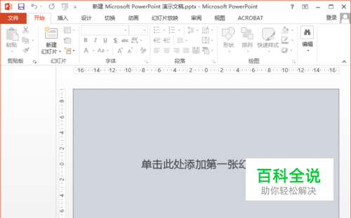首先新建一个ppt,如图中所示,根据图中的提示添加一张幻灯片。