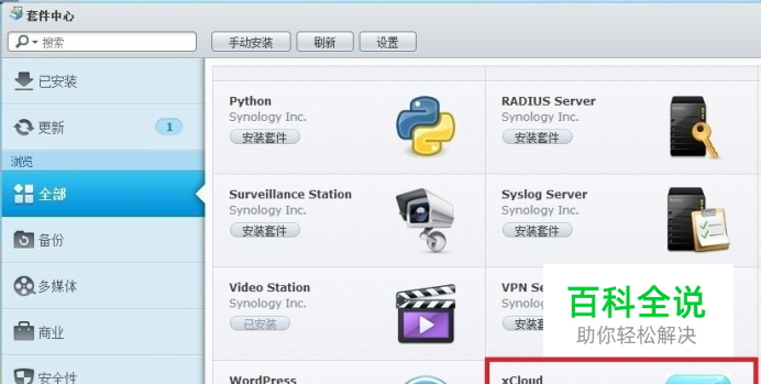 1、启动NAS,进入套件中心,选择点击安装小云软件; 2、再在移动端安装一个小云(下载地址:http://www.xcloud.cc/download.html) 3、注册账号,两端同时登录此帐号,点击如图所示部分进入选择连接你要连接的设备进行连接; 4、点击远程开关机,选择需要被操作的设备进行操作即可。