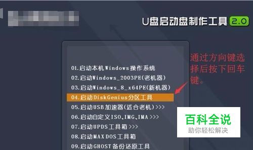 用U盘启动系统,一般主板按F8、F2或者是delete键可进入BIOS设置启动,这个根据不同的主板按键不同。进行U盘启动界面后我们选择DiskGenius分区工具,也可以选择进入PE同样能操作DiskGenius这个软件。