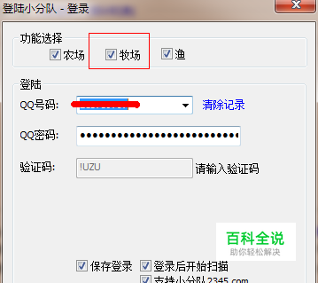 打开QQ牧场上面打钩;输入QQ账号密码