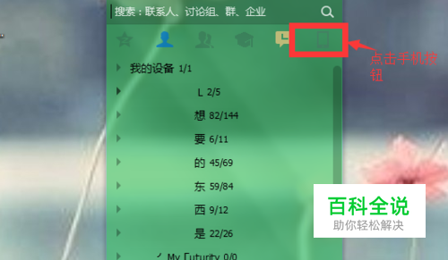 打开我们电脑上的qq页面,可以在功能栏看到一个手机一样的按钮,我们点击它,如图所示: