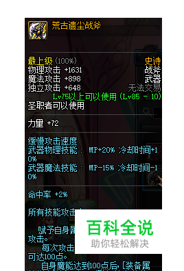 第五选择:混元之斧 武器自带buff属性,触发叠满之后有60%之多,比前面提到的荒古和禁灭之锤还要高出不少,但是基础属性偏低,如果强化较高的话,作为毕业武器最好不过了!