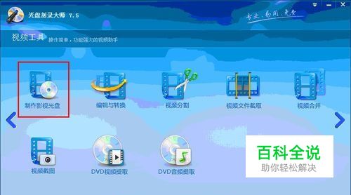 安装完成后,双击桌面光盘刻录大师7.5图标打开软件。选择“视频工具”-“制作影视光盘”,在出现的1/4界面,默认所有选项(也可以根据需要自己修改)直接“下一步”。