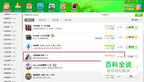 把空白光盘装入刻录机,打开360软件管家(这个应该有吧,没有就去360官网下载一个),选择“压缩刻录”菜单,然后安装“光盘刻录大师7.5”.