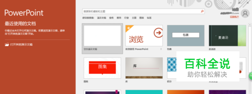 启动PowerPoint 2016,选择打开演示文稿选项或演示文稿模板选项执行打开、新建演示文稿的操作。