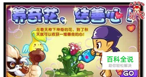 狐狸来到【同心山顶】询问白眉长老 他告诉狐狸用正确的方法培育他身边的那朵花,可以获得善良的心。每天只能照顾两次,在每天的12:00~14:00阳光充足的时候可以获得双倍奖励哦~ 点击花朵,开始培养吧~