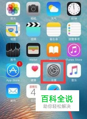 2、我以IOS11版本为例进行说明。首先我们来到手机的主界面,然后找到“设置”这个选项,如下图
