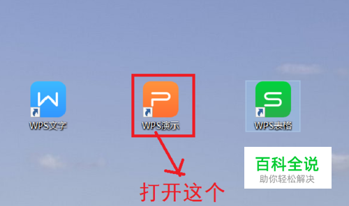 安装WPS演示,如果有请找到WPS演示软件,打开这个软件。如图所示: