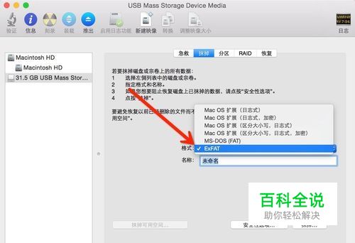 选“exFAT”,这个名目分区Win和Mac系统中全是能够进行读与写的,出格是能够撑持大于4GB的大文件,但是部分高清播放机也许是不撑持。