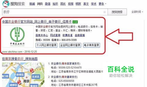 搜索“农业银行”,找到农业银行官网,并点击进入