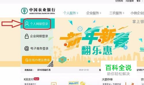 点击“个人网银登陆” 进入农业银行官网页面,选择“个人网银登陆”
