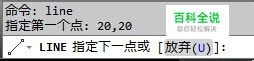 执行“直线”命令(L),命令行提示为“指定第一个点:”,此时在键盘上输入20,并按【Tab】键,再输入20,然后按空格键,从而确定起点。