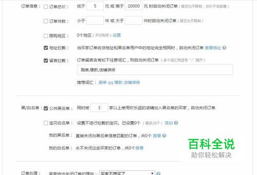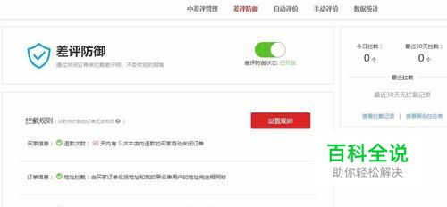 接着是差评防御功能,这里我们可以设定潜在的中差评拦截,比如买家好评率过低只有50%的这种,并且还有很多是打广告骚扰的下订单,这里都可以设置规则拦截。