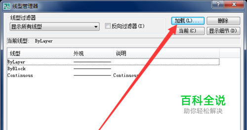 点击“其他”打开线型管理器,在右上角找到“加载”并点击