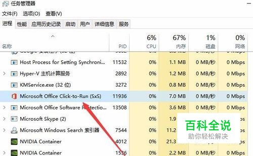 我们先打开任务管理器,可以看到在后台有一个Microsoft Office Click-to-run(SXS)的进程。